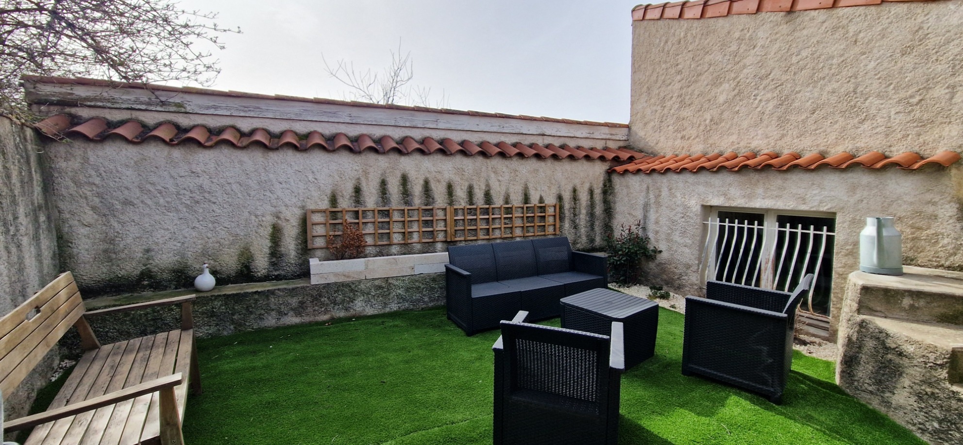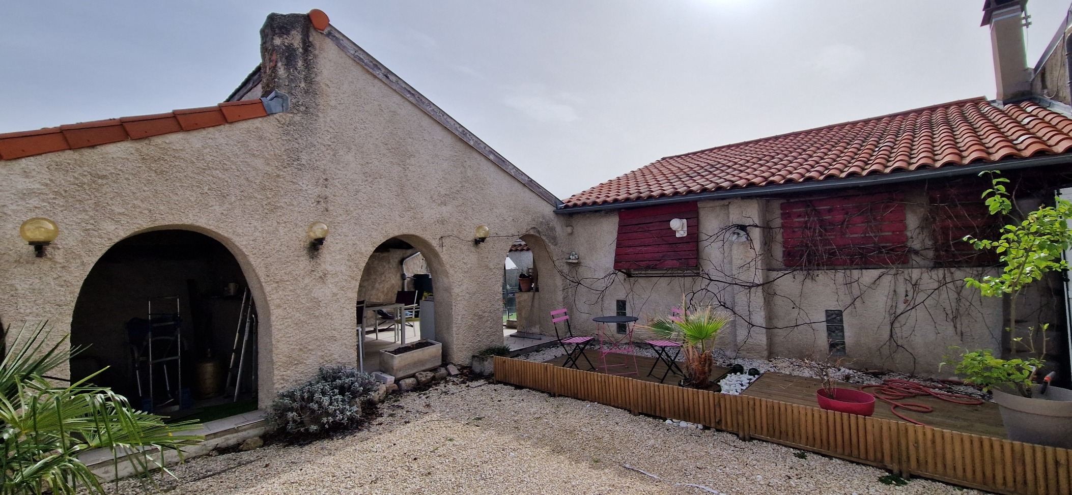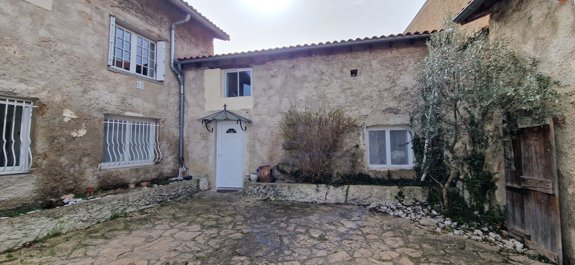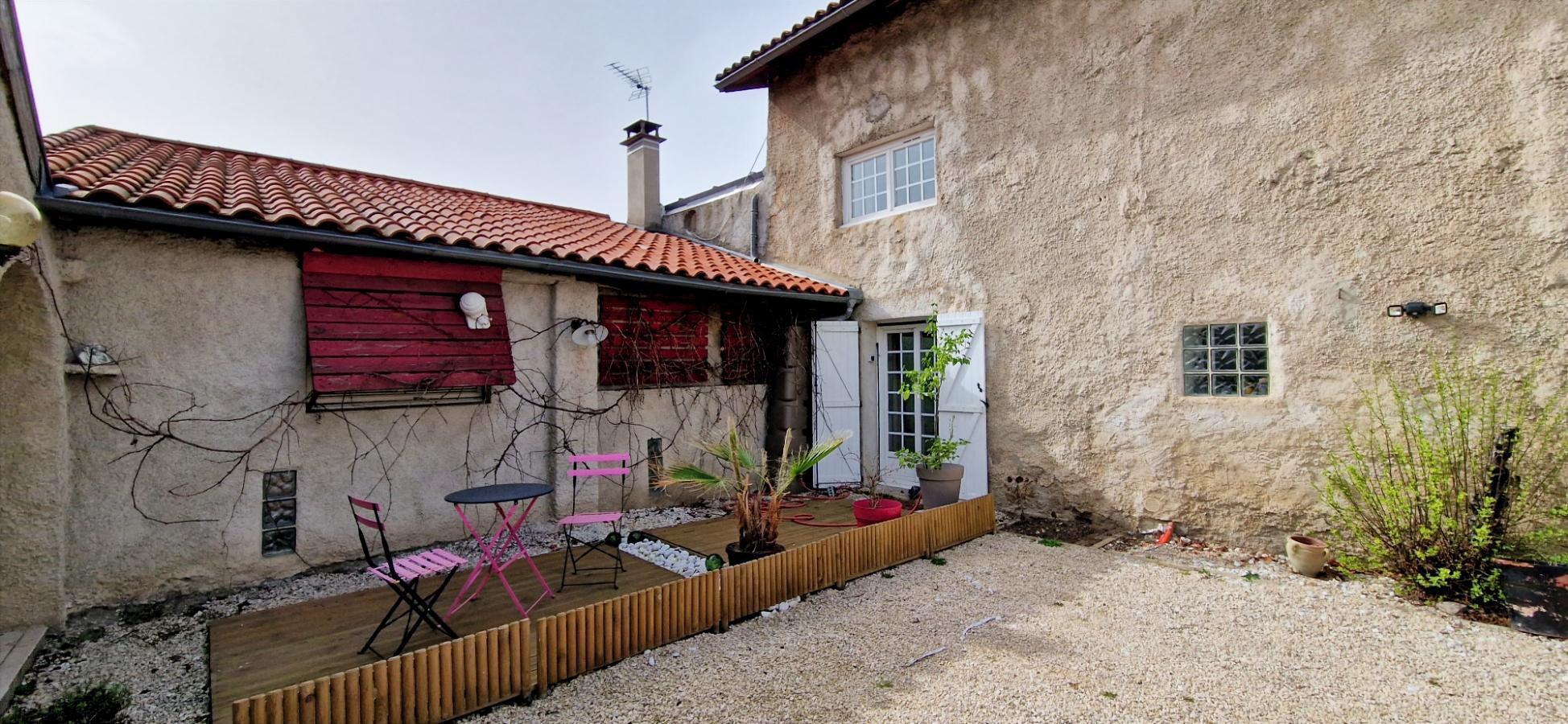 À l’extérieur, deux espaces distincts complètent le bien. D’un côté, une cour avec abri permet de profiter de moments agréables en famille ou entre amis. De l’autre, une seconde cour accueille une ancienne grange, offrant un fort potentiel pour différents projets (atelier, stockage, aménagement complémentaire).