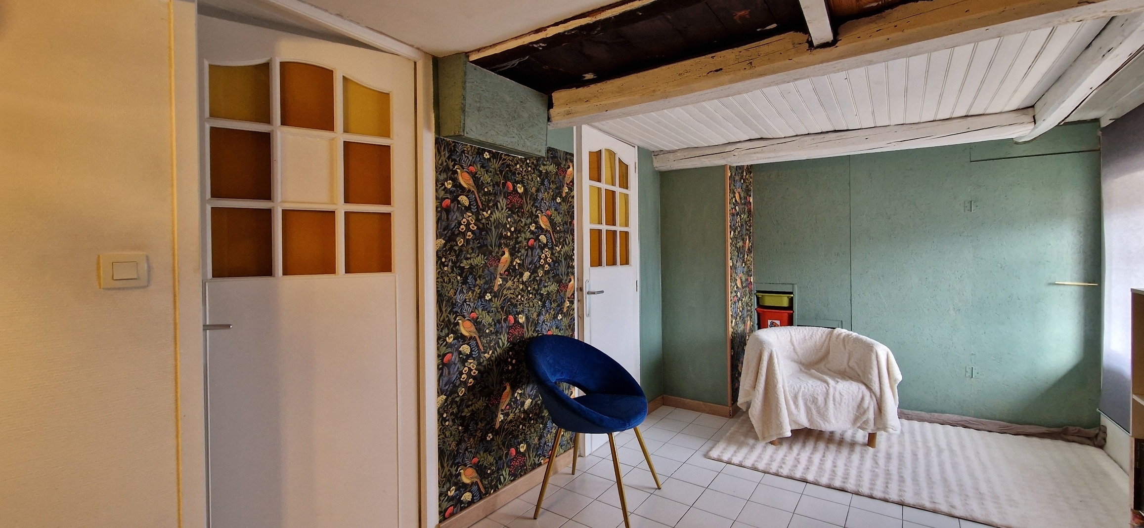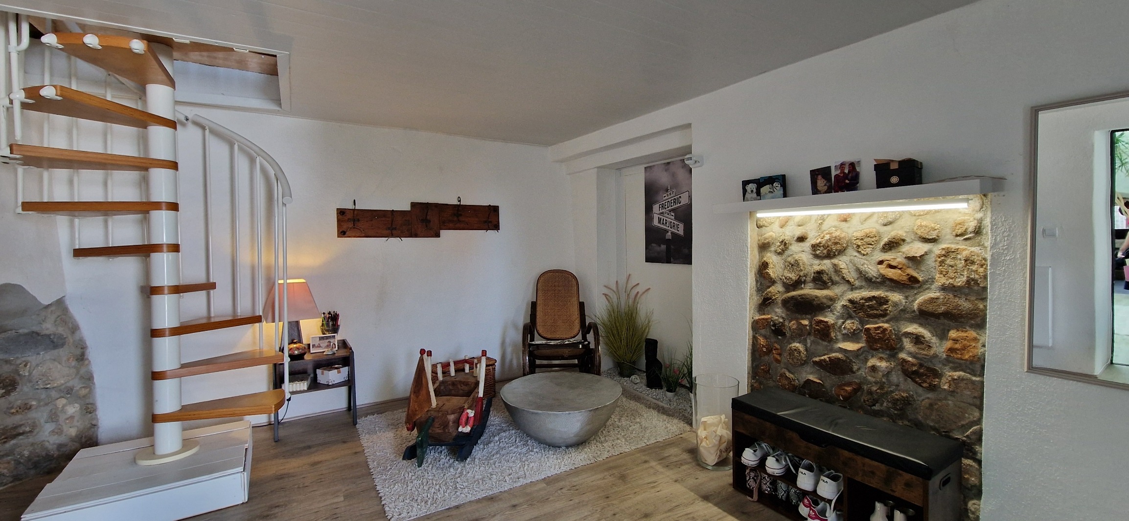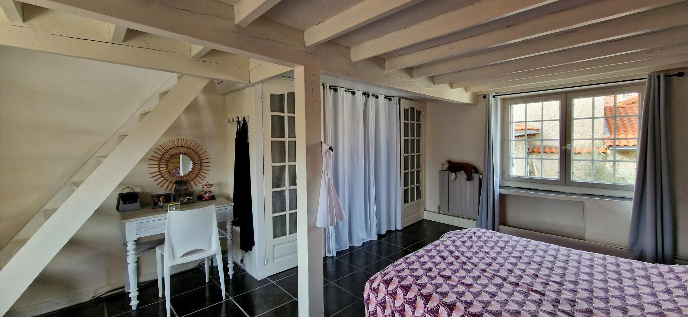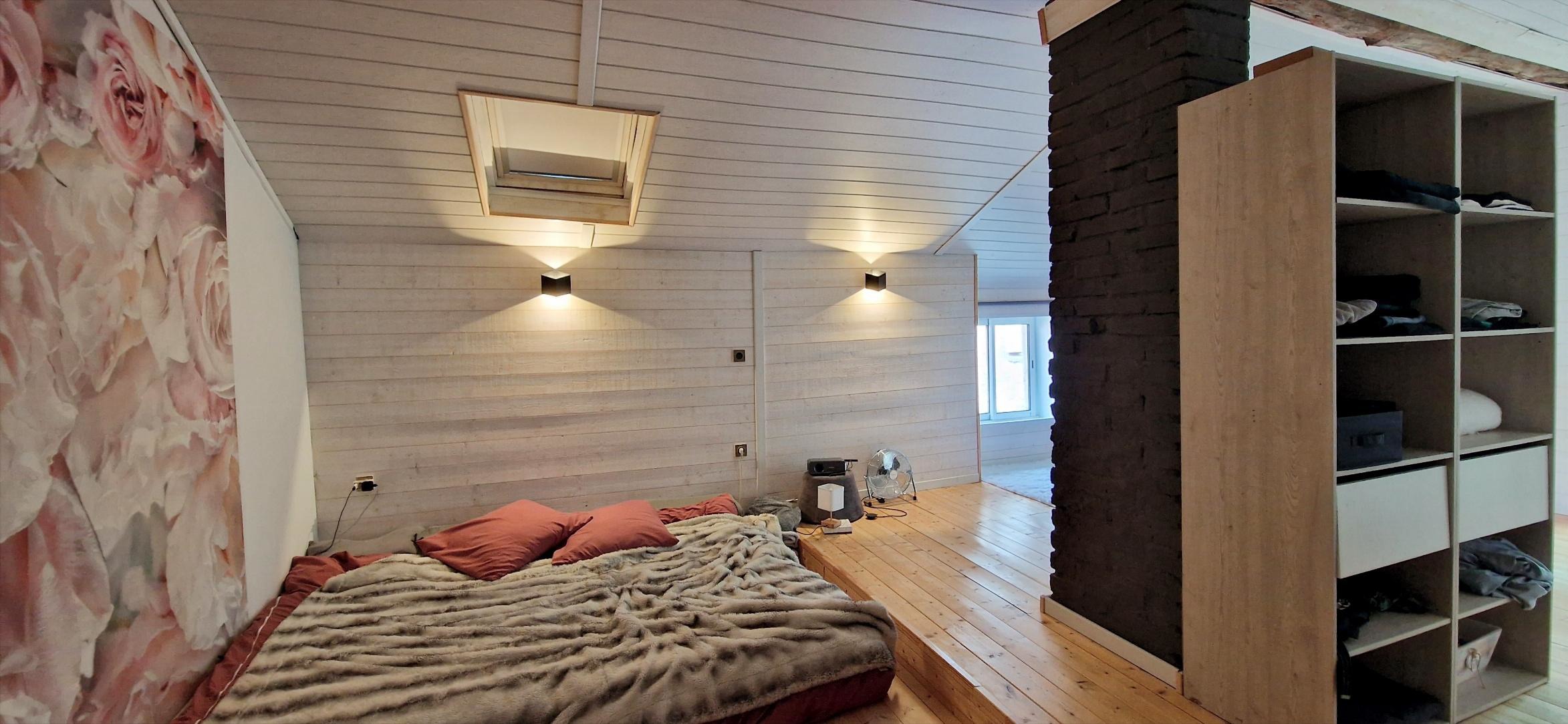 Au dernier niveau, une pièce aménagée sous les combles offre un espace supplémentaire parfait pour accueillir famille et amis ou créer un espace détente.