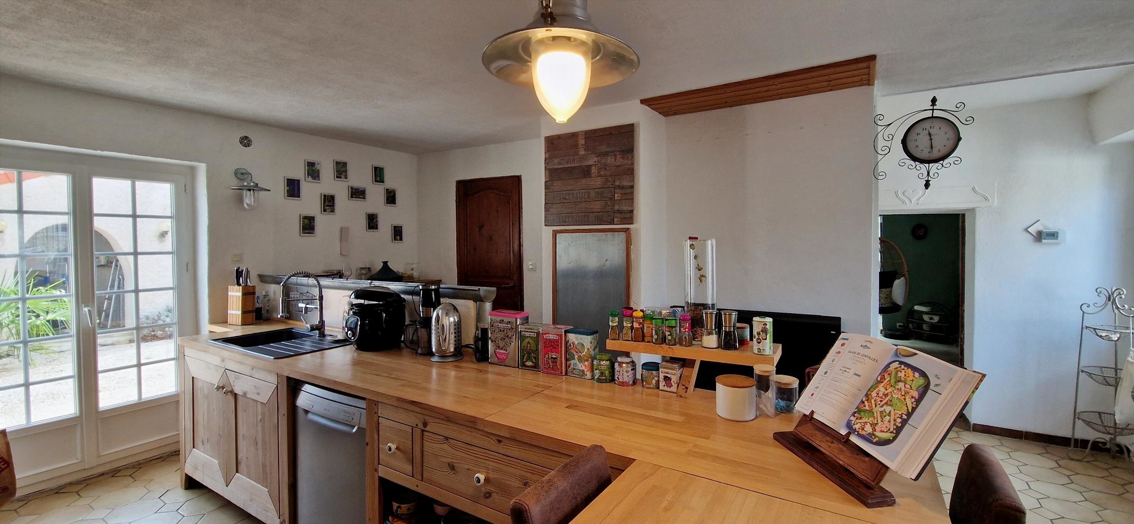Côté prestations techniques, la maison est équipée de fenêtres en double vitrage, d’un poêle à granulés, d’une cheminée à foyer fermé, de radiateurs électriques récents, ainsi que de panneaux photovoltaïques installés en 2023 pour l’autoconsommation.