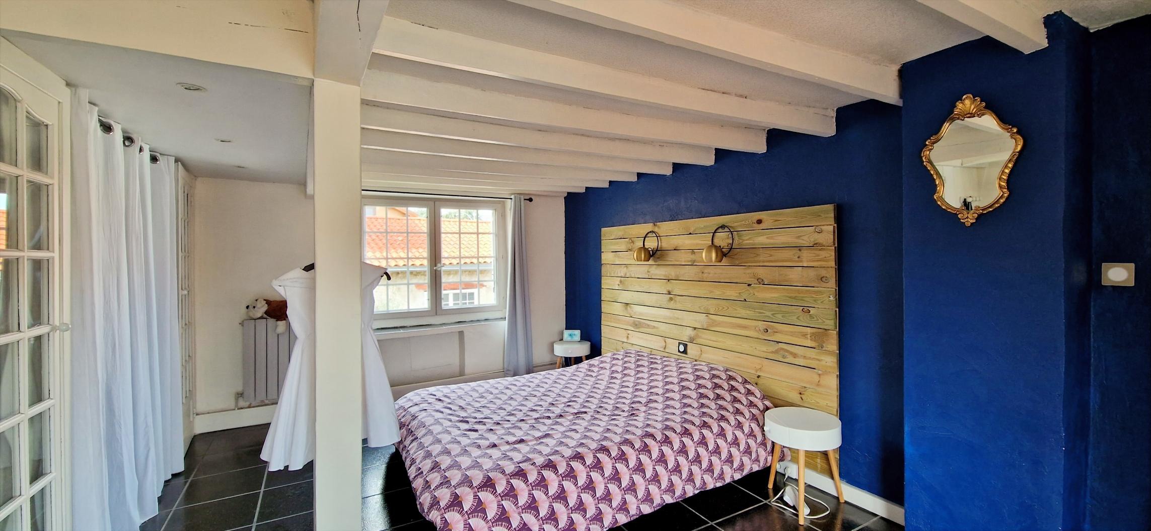 À proximité du hall d’entrée, vous trouverez une spacieuse chambre ainsi qu’une salle de bain équipée d’une baignoire d’angle.